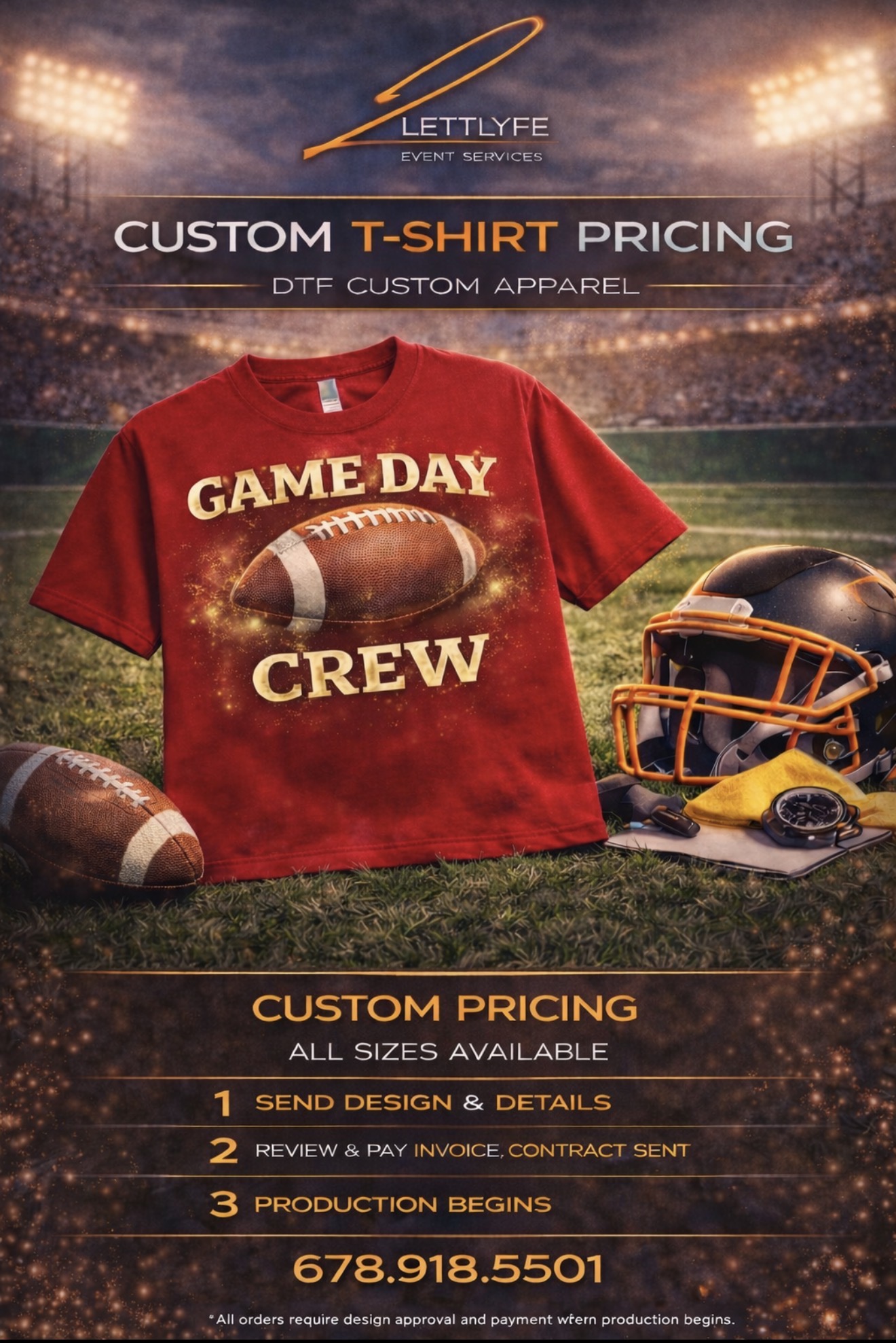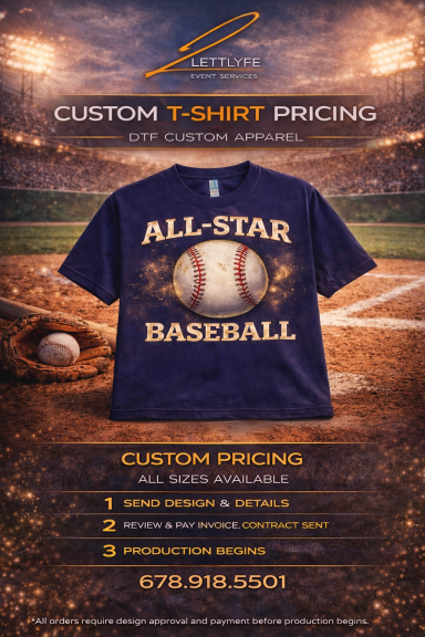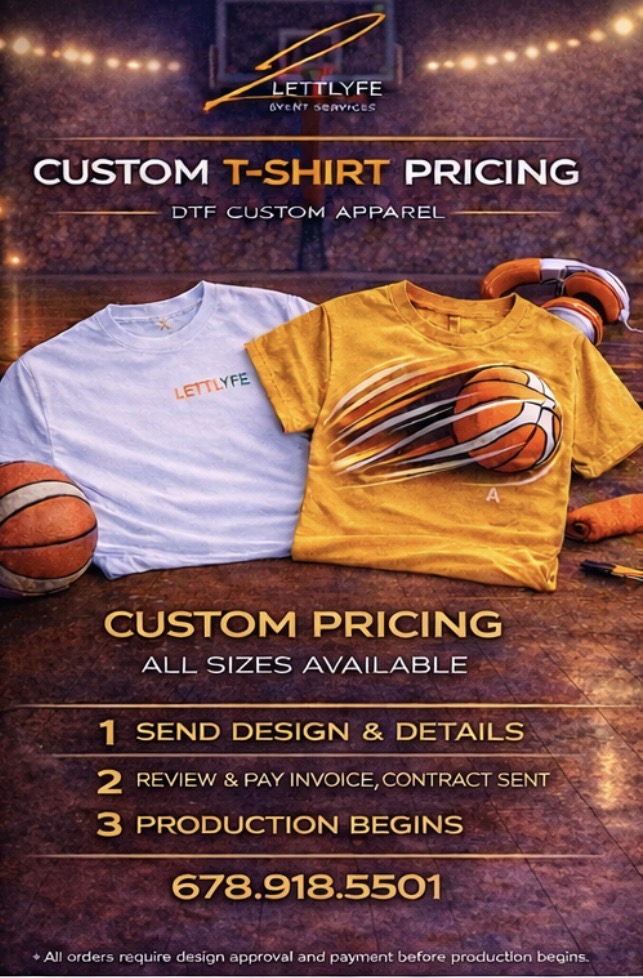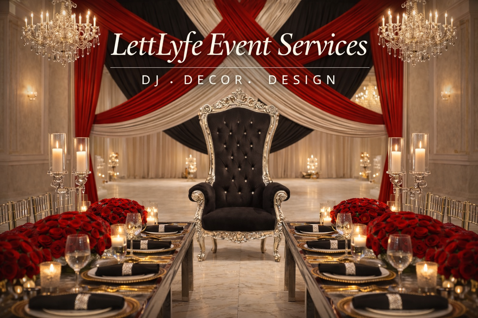 Browse our image gallery showcasing the creativity and quality behind LettLyfe Event Services. From custom decor, luxury draping and balloon installations to DJ services, table and chair rentals, and personalized T-shirts, each event reflects our committment to making every celebration intentional and unforgettable.